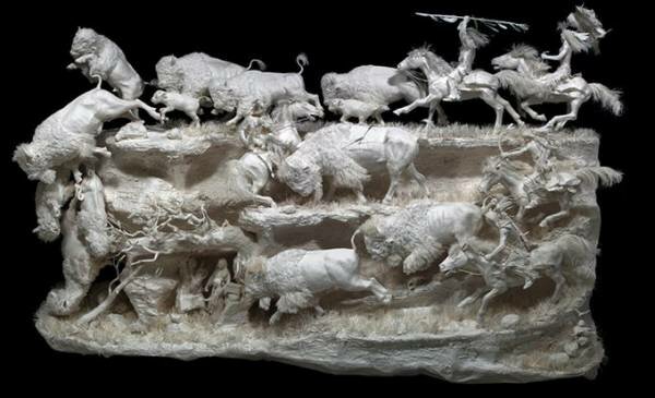 Когда слепок вынимается из формы,тогда начинается процесс доводки,самый тонкий. Какие-то детали удаляются,какие-то добавляются. За счет чего обеспечивается очень тонкая проработка деталей. Это очень длительный процесс,иногда отнимающий месяцы работы.Чем-то это похоже на процесс литья из бронзы, законченный продукт — белого цвета,очень легкий и со множеством тончайших деталей.
