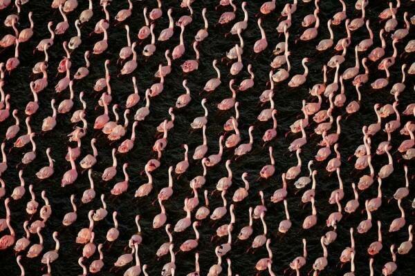 Малых фламинго больше, чем их более крупных представителей, – на одного большого приходится 200 малых особей. Несмотря на такую разницу в количестве, птицы очень хорошо ладят между собой, как члены одной семьи, и даже не конкурируют за пищу, так как питаются разными видами корма.